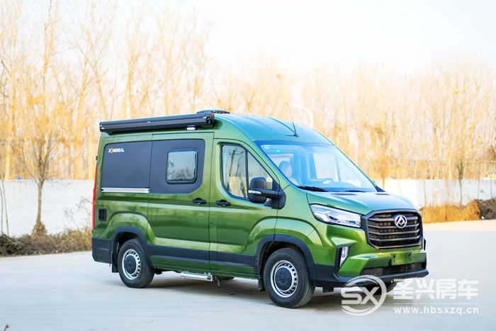 采用時下最流行的車身配色莫蘭迪時尚吸睛,房車專用底盤大通V90短軸高頂改裝,車長5180毫米、寬2062毫米、車高2755毫米,上藍牌C本就能駕駛。為前置前驅,后部單胎設計,滿足國六排放標準,需要加注尿素并配有20L尿素箱。