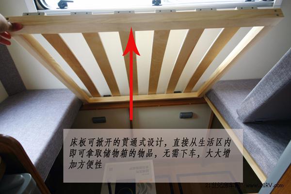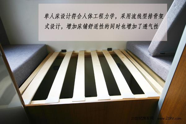 內(nèi)部設(shè)計(jì),整車(chē)采用E0級(jí)板材,更環(huán)保。雙人床、客廳、廚房、衛(wèi)生間、單人床依次排列,一改覽眾C6房車(chē)的上下鋪設(shè)計(jì),但是床位并無(wú)減少,反而后部單人床設(shè)計(jì)更創(chuàng)造出一個(gè)大大的儲(chǔ)物箱。同時(shí)單人床融入人體工程力學(xué)設(shè)計(jì),采用流線(xiàn)型排骨架設(shè)計(jì),不僅僅增加了床鋪的舒適性同時(shí)還增加透氣性。中部床板可掀開(kāi)的貫通式設(shè)計(jì),直接從生活區(qū)內(nèi)即可拿取儲(chǔ)物箱的物品,無(wú)需下車(chē),大大增加方便性。床鋪周?chē)膬?chǔ)物格以及儲(chǔ)物袋的設(shè)計(jì),把空間利用到極致。