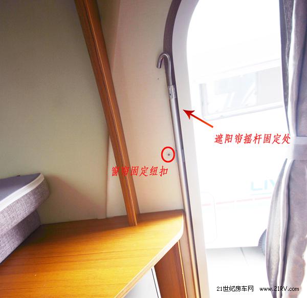 整車(chē)窗戶(hù)設(shè)置有遮陽(yáng)簾、紗窗、紗簾,具有遮陽(yáng)、防蚊、增強(qiáng)用戶(hù)私密性作用。同時(shí),車(chē)門(mén)、衛(wèi)生間安裝窗簾更進(jìn)一步保護(hù)房車(chē)的私密空間,墻體設(shè)置按鈕非使用期間將其固定。