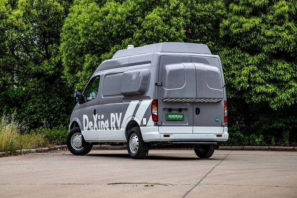 車頂采用加高硬頂設計,目的是拓展車內高度,而在車側、車尾部分我們同樣可以看到盲窗結構,最終新車的尺寸為5120x2018x2665(mm),3米以內的限高路段均可通行。