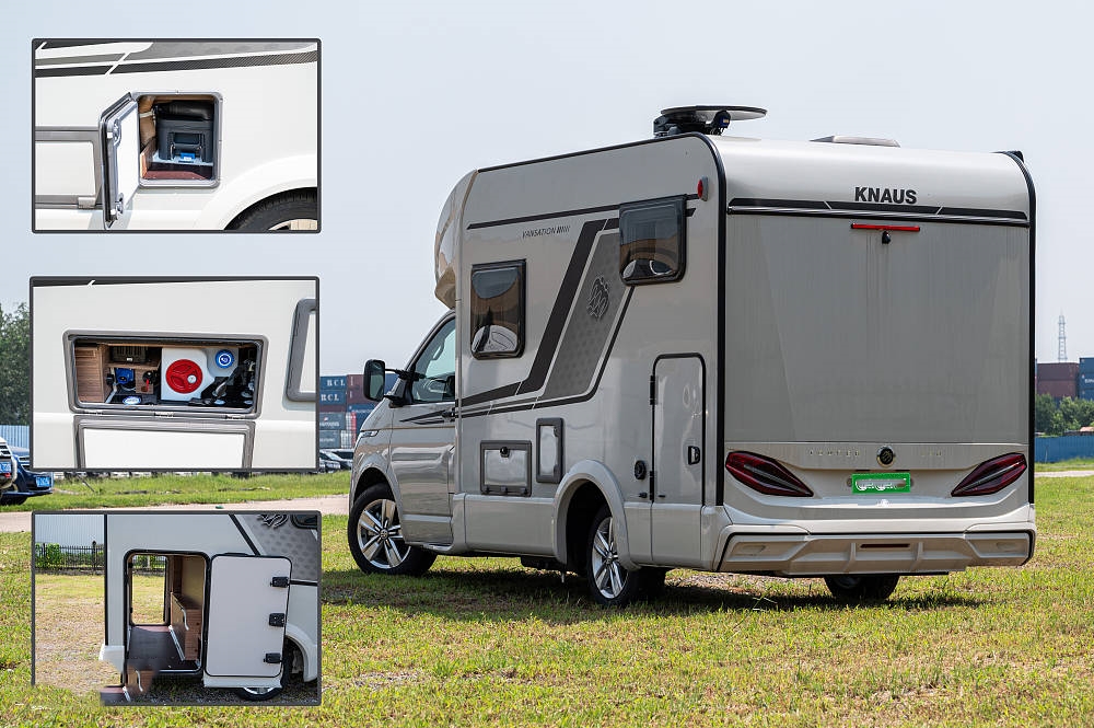 外部方面遮陽(yáng)棚、特魯瑪柴油加熱器、中門踏步、戶外LED照明以及創(chuàng)新的簡(jiǎn)易維修箱,將所有設(shè)施連接集中在同一個(gè)位置使一切都易于維護(hù)維修。另外特別值得一提的是車尾有一個(gè)超大的貫通儲(chǔ)物艙,再配上180度的開口方便整理物資的同時(shí)也為露營(yíng)、設(shè)備及其它大件行李和物品提供了充足的存儲(chǔ)空間。