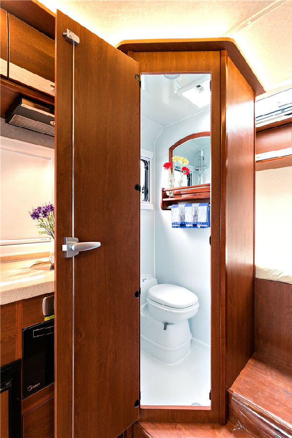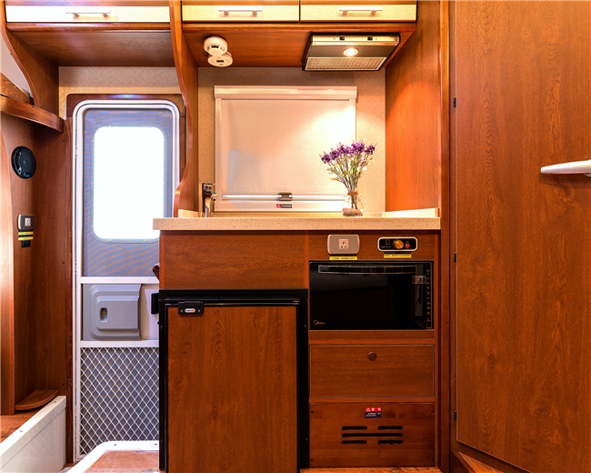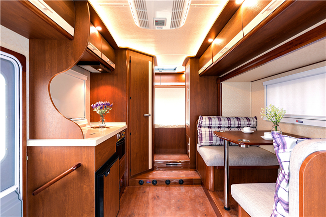 除了這個(gè)布局,我們也可以改裝成C型房車的經(jīng)典布局: