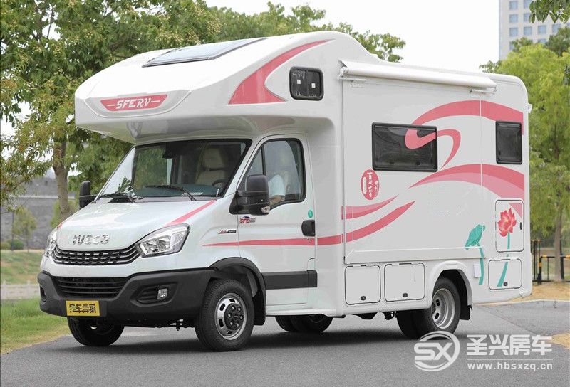 作為依維柯雙拓前開門系列的旗艦版,外觀有著滿滿的中國風,車身以白色涂裝為主色調,在輔以東方紅為點綴,富有田原風光的荷花點綴其間,走在路上,它就是風景!