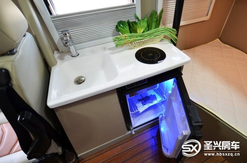 在車尾左右兩側(cè),還設(shè)有戶外廚房,通過車身尾部的外置熱水器,可以給車內(nèi)提供熱水。 頂部太陽能電池帆板(電池可最大升級至600AH),水箱增大到110L(其中冷水85L、熱水25L),30L污水箱,帶行車加熱和駐車加熱兩套系統(tǒng)。戶外廚房,采用獨(dú)立的防風(fēng)戶外爐灶,旋轉(zhuǎn)式洗菜盆設(shè)計(jì),便于在不占用空間情況下,最大量化的利用空間。對于清潔灶具、食物極為方便。最大程度的把家用廚房的習(xí)慣搬至房車上,讓您感受到如同在家做飯一樣的感受;