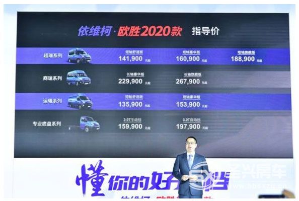 南京依維柯于2019年9月5日成都國(guó)際車展上震撼推出了依維柯歐勝2020款。這一爆款新品為用戶量身打造,刷新用戶期待,標(biāo)配高端,車型豐富,極具品價(jià)比。超瑞短軸舒適版141,900元起;商瑞長(zhǎng)軸豪華版229,900元起;運(yùn)瑞短軸舒適版135,900元起;專業(yè)底盤159,900元起,更有首批車主“搶訂禮”和車展現(xiàn)場(chǎng)訂車六重定制禮包。懂用戶所想,供用戶所需,“懂你的好搭檔”依維柯歐勝2020款即刻開啟定制。