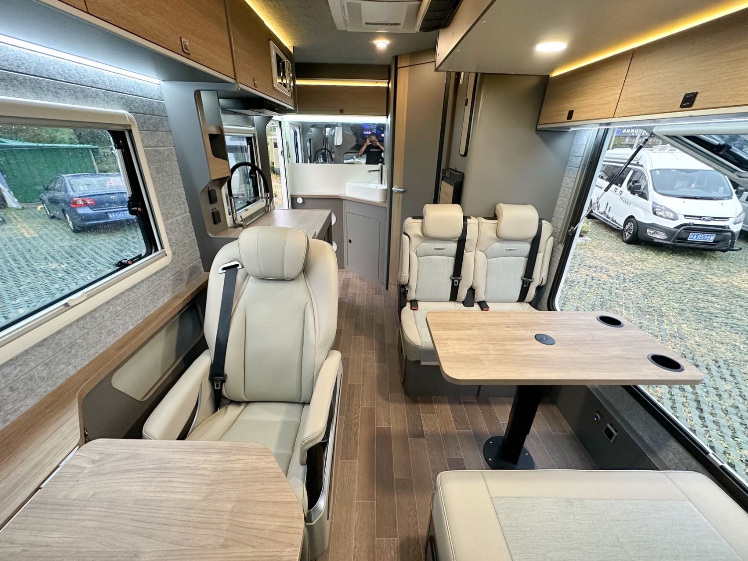 電器配置:頂置多美達IBIS4變頻空調(diào)、燃油鍋爐、網(wǎng)絡電視機、航空座椅、電動吊床、卡座拼床、額頭大床、隱藏式廚房操作臺、洗臉池、洗菜池、洗衣機、微波爐、電磁爐、多美達旋轉(zhuǎn)抽拉馬桶、淋浴花灑、電動換氣扇、超大側(cè)邊窗、新能源充電口+220家用充電口、戶外抽拉柴油灶、戶外遮陽蓬、菲亞瑪上門扶手、電動踏步。