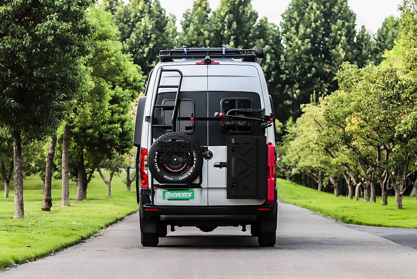 車尾配置包括爬梯、全尺寸備胎、自行車架、儲物艙等。底部配有三口拖車杠。車頂位置裝配了頂置行李架,用戶可以從車側、車尾爬梯夠取行李物品。