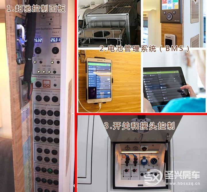 1.您不僅能夠通過平板電腦操控和監控智能家居自動化系統設備,而且車廂內還是配置了一個清晰簡易的備用設備——超馳控制面板。任何有開關控制的設備,都可以通過這個面板來集中開關,并會產生文件記錄。這個面板可以用于開關所有的供電回路,如交流電機、太陽能、電網和發電機。